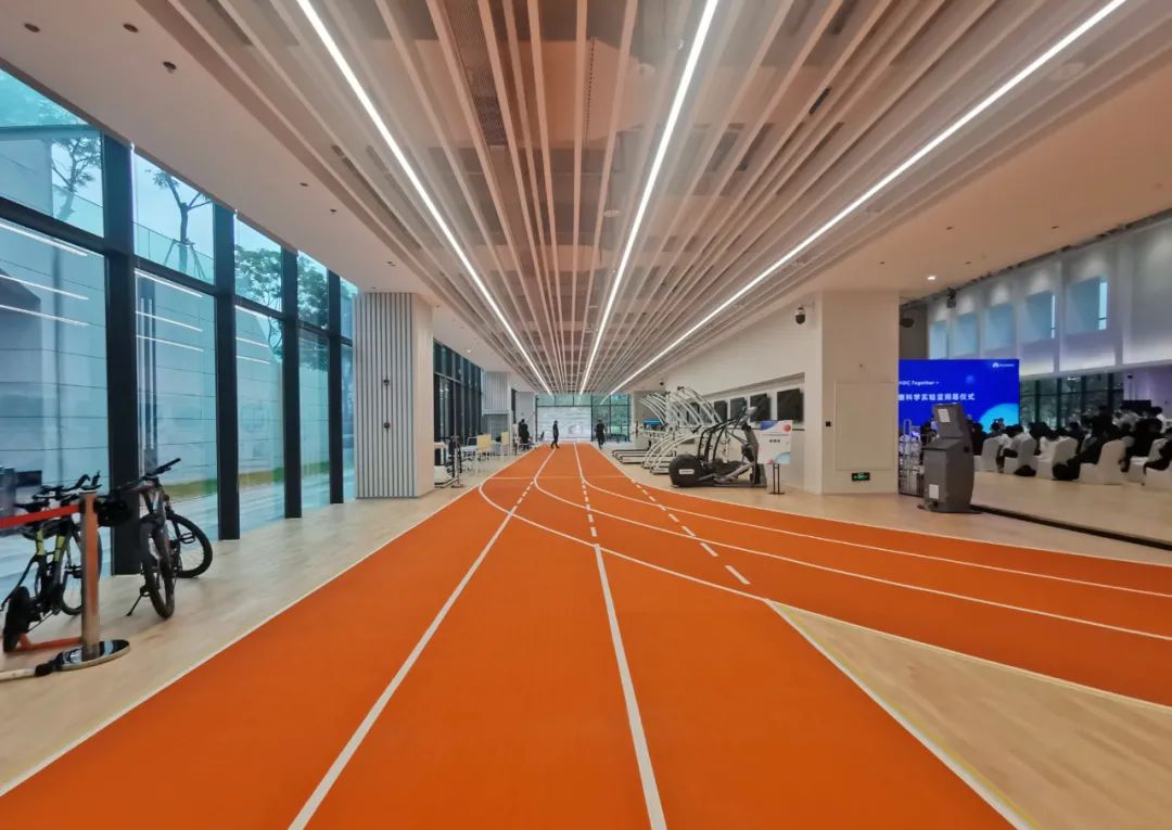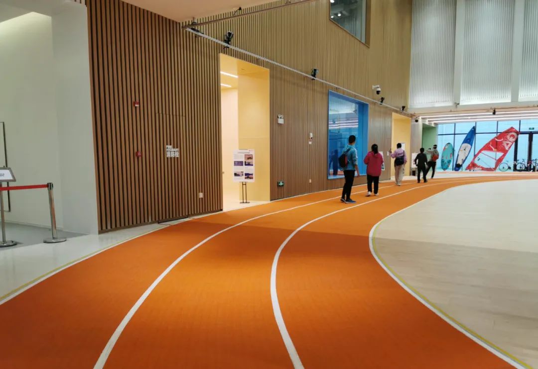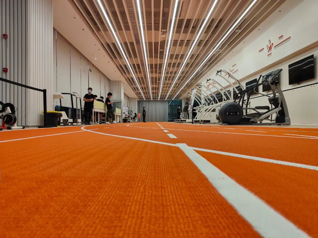 估計不少朋友已經發現了,幾乎在每個場景都能看到一條亮眼的橘紅色跑道,這條環繞著實驗室的橡膠跑道正是出自同欣體育。本次項目選用的同欣體育預制型橡膠跑道,是采用高度耐磨橡膠高分子材料精制而成、雙層一體結構的環保型橡膠卷材,是一種全新的、突破性的可適用于室內外多功能的預制型橡膠跑道。