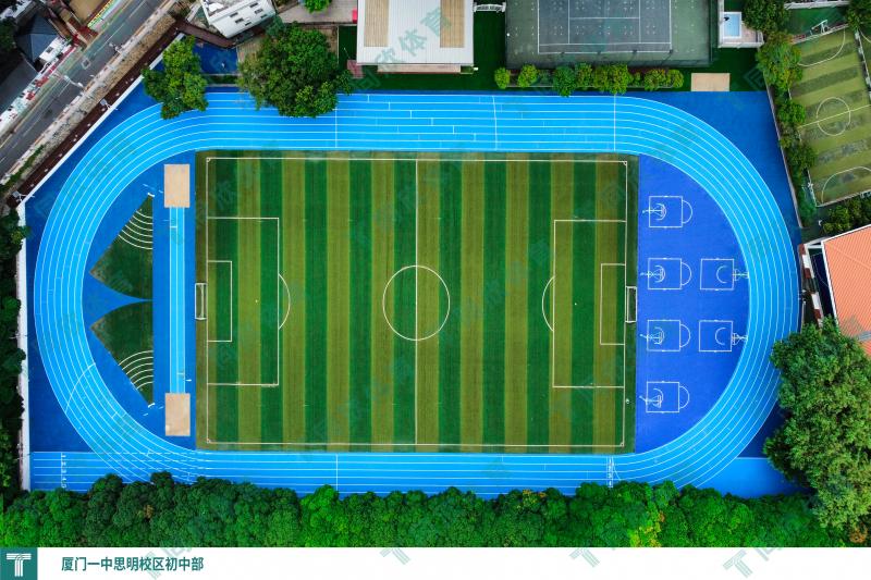 為響應(yīng)國家教育方針,更好地深化體教融合,該校的初中部體育場選用同欣體育預(yù)制型橡膠跑道。藍(lán)色的同欣跑道就像是無垠的大海和天空一樣,不僅看著賞心悅目,而且具有很好的緩震緩沖、抗釘刺、耐候耐磨、防滑等穩(wěn)定性能。