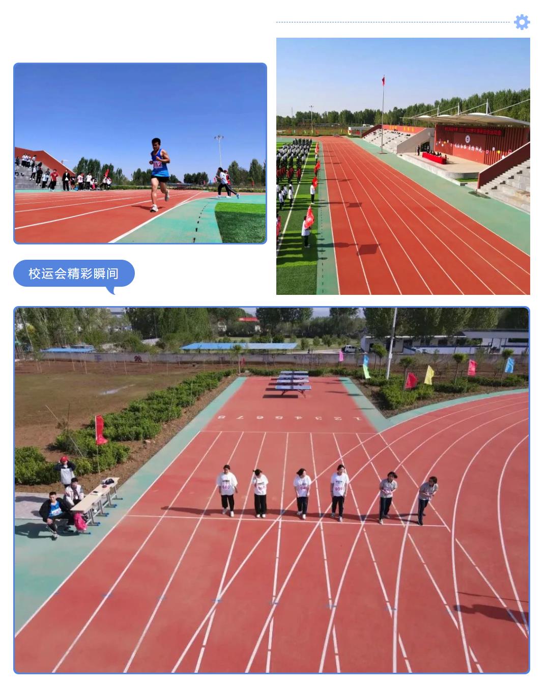 首先,他們建有一片帥氣十足的400米標準跑道操場,選用同欣預制型橡膠跑道,不僅腳感舒適,讓你感受跑步“帶風”的感覺,而且操場上還設有超帶感的看臺,讓你無論觀賽還是運動都不要太爽!
